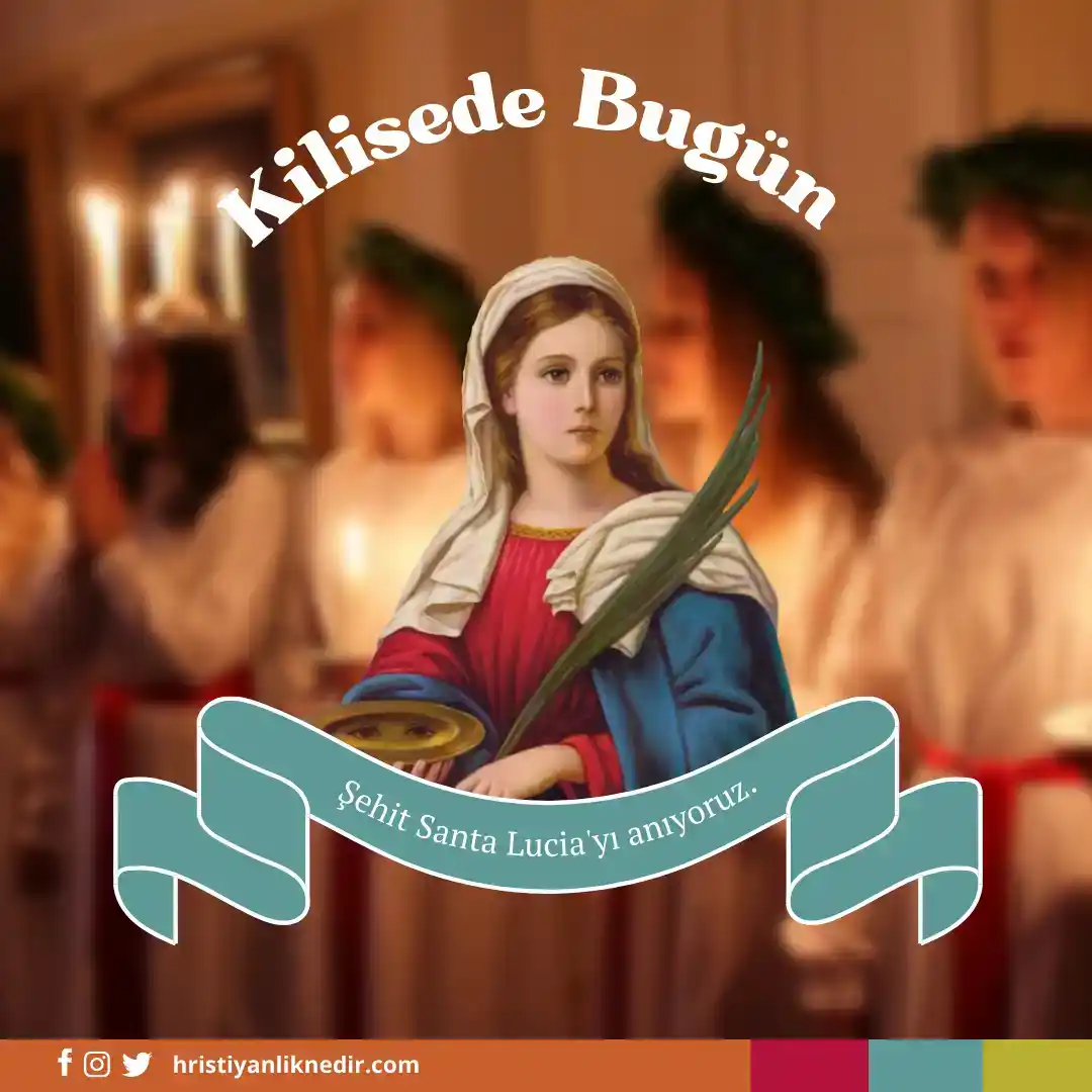 Kilisede bugün şehit olmuş (Santa Lucia, bütün İtalya’da bilindiği ismiyle) anılır. İmparator Diocletianus döneminde Hristiyanlara karşı yapılan Roma zulmünün kurbanı oldu. M.S 304’te Sicilya adasında Siraküze şehrinde vefat etti. Çeyiz sandığını geri vermiş ve ölümüne kadar bakire kalmıştır. Kılıçla idam edilmiştir. Adı “Işık” anlamına geldiğinden dolayı birçok Avrupa ülkesinde Işık Festivali’nde Azize Lucia’yı anarlar. Özellikle…