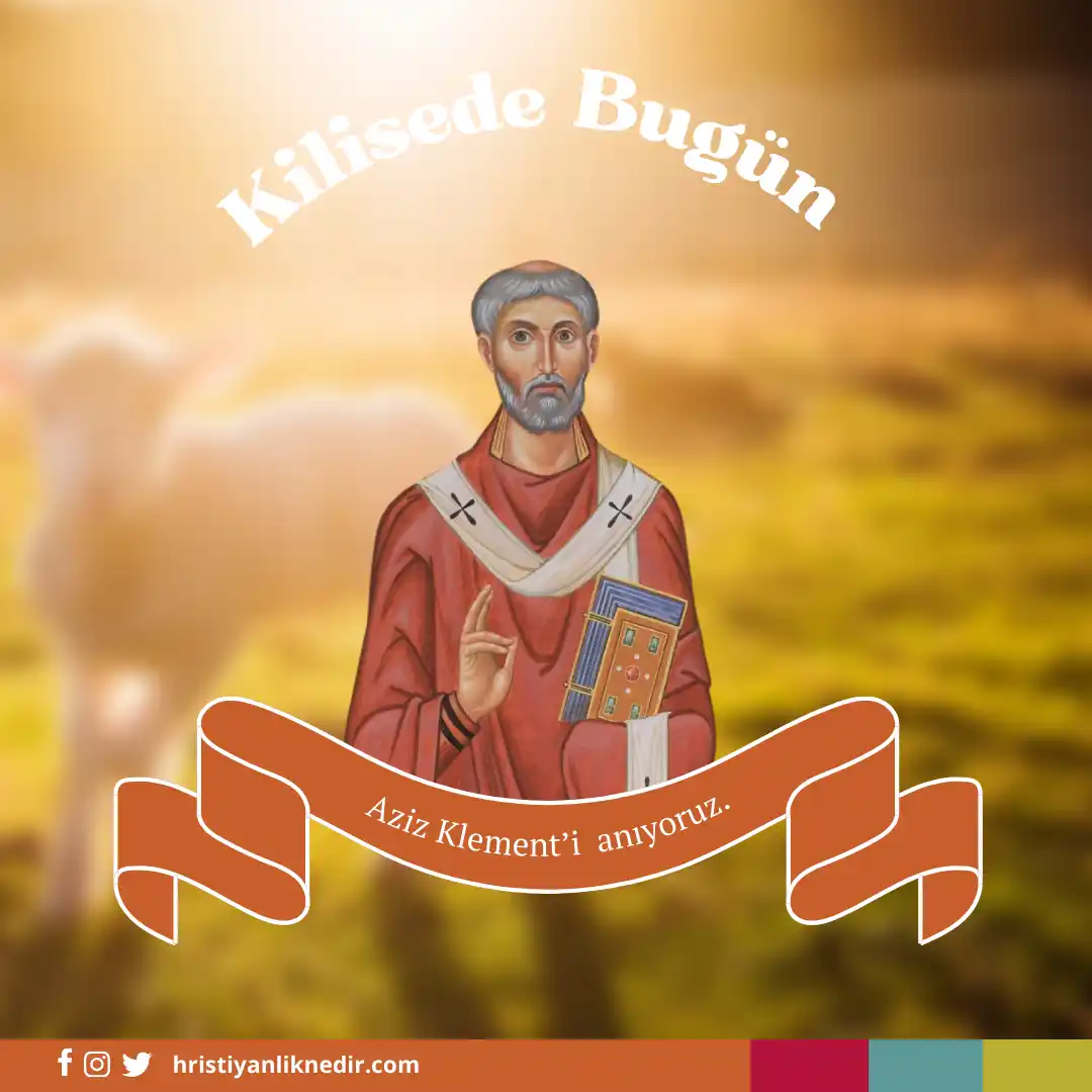 Kilisede bugün pastör olan Roma’lı Aziz Klement’i anıyoruz. Mesih’ten hemen sonra, ilk yüzyılda M.S 35-100 arasında yaşamıştır. İsa Mesih’i ibadetlerde ve vaazlarda her zaman kilisenin odak noktası yapmasıyla bilinir. Bütün pastörleri ve imanlıları da Mesih’in ölümü ve dirilişine odaklanmaya davet eder. Aynı zamanda “birinci ve ikinci yüzyıllar arasında kilisenin yönetim otoritesine elçisel düzeni getirmiştir” Klement…