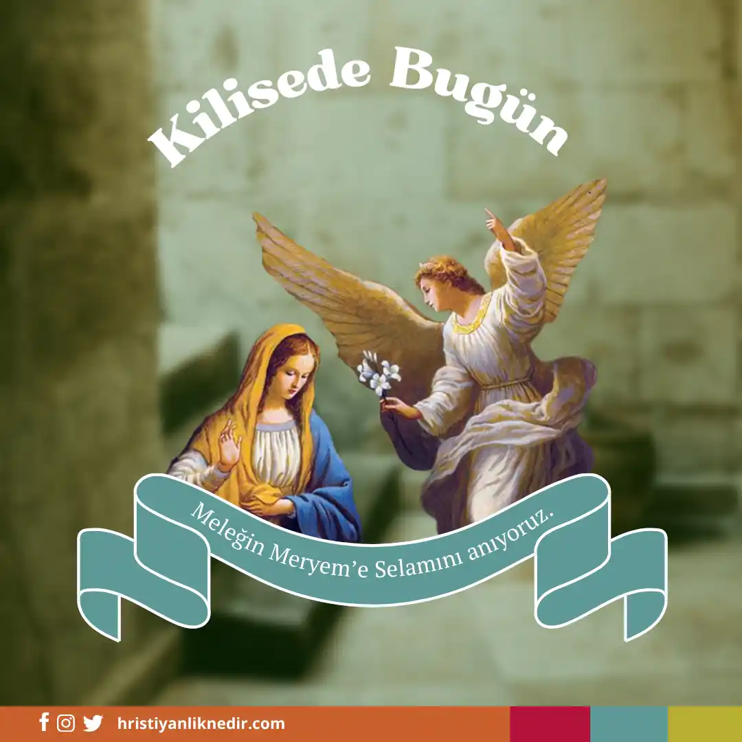 Kilise’de bugün Meleğin Meryem’e Selamını anıyoruz. Melek Cebrail Bakire Meryem’e göründü bugün. Kendisinin Tanrı’nın lütfuna eriştiğini, uzun zamandır beklenen Mesih’i doğuracağı müjdesini verdi ona. Kutsal Ruh’un üzerine geçeğini, gücünün ona gölge salacağını söyledi (Luka 1:35). Kutsal Ruh, yaratılış zamanında suların üzerinde dalgalandığı gibi Meryem’in de rahmi üzerinde dalgalanarak Tanrı’nın oğlunun doğmasına vesile oldu. Antik kilise…