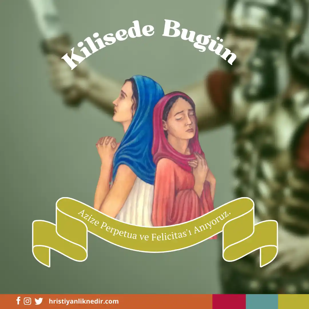 Kilisede bugün şehit Aziz Perpetua ve Felicitas anılıyor. Perpetua ve Felicitas üçüncü yüzyılda Hristiyanlığa geçişi yasaklayan İmparator Septimus Severus döneminde şehit edildiler. Asil bir Roma’lı kadın Perpetua ve hizmetçisi Felicitas bu emire başkaldıranların arasındaydılar. Üç Hristiyan’la daha birlikte Kuzey Amerika’ya, Kartaca’ya sürüldüler. Bu kadınlar İsa Mesih’e o kadar güçlü tanıklık ediyorlardı ki orada bulunan memur…