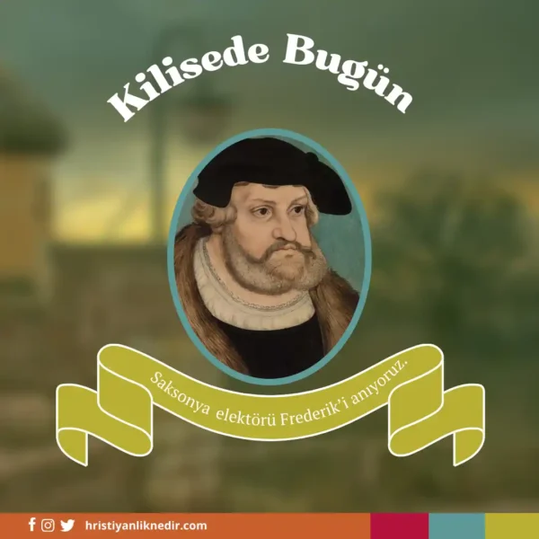 Kilisede bugün 1486-1525 yılları arası Saksonya’da elektörlük yapmış Frederik’i anıyoruz. Reformasyon’un ilk yılları Martin Luther’in yaşadığı bölgede kendi özerkliği vardı. Frederik olmasaydı Reformasyon hiç başlamayabilirdi. Torgau, Almanya’da Saksonya eyaletinin yöneticiliğini elinde tutan bir ailenin oğlu olarak dünyaya geldi. Siyasi diplomasi alanındaki yeteneklerinden dolayı onu adil ve tarafsız gören halk “Bilge” ismini verdi kendisine. Martin Luther…
